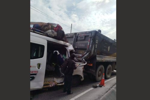Un total de siete personas resultaron heridas como consecuencia del choque entre un camión volquete y un miniván de la empresa de transportes Aries, en la carretera Longitudinal de la Sierra de La Libertad, a la altura del caserío Casmiche, en el distrito y provincia de Otuzco.