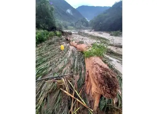 desborde del río de su cauce natural, afectando más de 100 metros lineales de franja ribereña. La fuerza del agua ocasionó el arrastre de abundante vegetación y árboles de gran tamaño, además de generar daños en terrenos de cultivo, principalmente de mango, limón y otros sembríos, cuyas pérdidas aún se encuentran en proceso de cuantificación. Asimismo, se reportaron