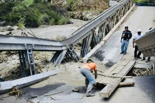 Respecto al colapso del puente Baños Chimú, en la provincia de Gran Chimú, que dejó aislados a los distritos de Sayapullo y Lucma, el funcionario mencionó que es posible en los próximos días llegue un nuevo puente para ser instalado en el lugar, mientras tanto la población continúa usando las rutas alternas y las tablas de madera que han colocado sobre la estructura desplomada para pasar de un lugar a otro.