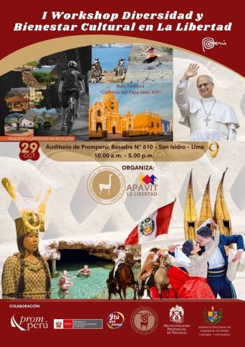 Alrededor de 40 representantes de agencias de viaje, operadores turísticos, hoteles, restaurantes, artesanías y exportadores de la región La Libertad llegarán a Lima para participar del I Workshop Regional "Diversidad y Bienestar Cultural La Libertad", donde mostrarán lo menor de sus destinos turísticos y productos exportables.