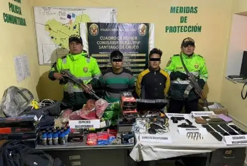 Asimismo, se halló un conjunto de diversos objetos que fueron reconocidos por los agraviados como de su propiedad. Los intervenidos, armas de fuego y especies recuperadas fueron puestos a disposición de la comisaría de Santiago de Chuco para las diligencias e investigaciones de ley.