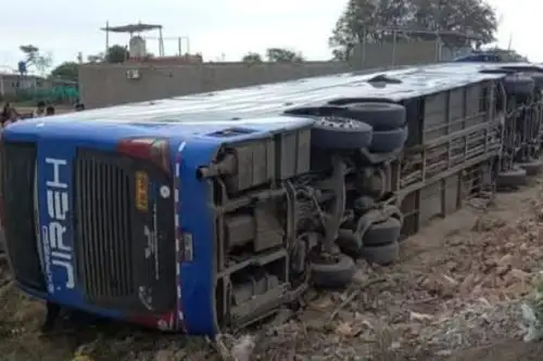 Un bus de pasajeros de la empresa de transportes Jireh, que cubría la ruta Olmos – Lima, sufrió un despiste y, a consecuencia de ello, una volcadura.