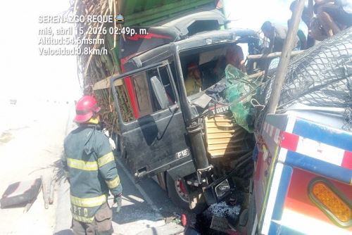 El choque de dos vehículos de carga pesada generó alarma esta tarde en la carretera Panamericana Norte, a la altura del distrito de Reque, provincia de Chiclayo, departamento de Lambayeque, dejando como saldo dos personas heridas.
