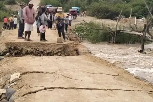 Las intensas lluvias registradas en la parte alta de la serranía provocaron el incremento del caudal del río Zaña, en la región Lambayeque, lo que desencadenó el colapso del puente de alcantarillas La Otra Banda.