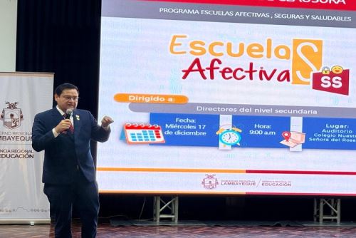 Más de 22,000 estudiantes del tercer al quinto año de secundaria, de instituciones educativas públicas de la región Lambayeque, se beneficiaron con la estrategia regional “Escuelas Afectivas, Seguras y Saludables”, impulsado durante el presente año por el Gobierno Regional de Lambayeque, a través de la Gerencia Regional de Educación.