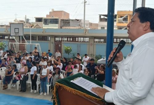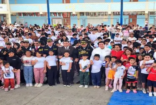 El acto se realizó en la institución educativa Abraham Valdelomar, ubicada en el pueblo joven José Olaya, y contó con la participación del jefe de la Región Policial Lambayeque, general PNP Luis Bolaños, así como de padres de familia y autoridades locales.