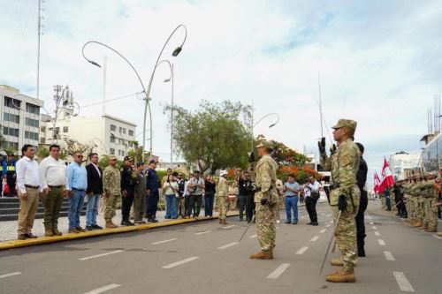 Más temprano, el ministro Vicente Tiburcio participó en la ceremonia de izamiento del Pabellón Nacional y entonación del Himno Nacional en la plaza de armas de Chiclayo.