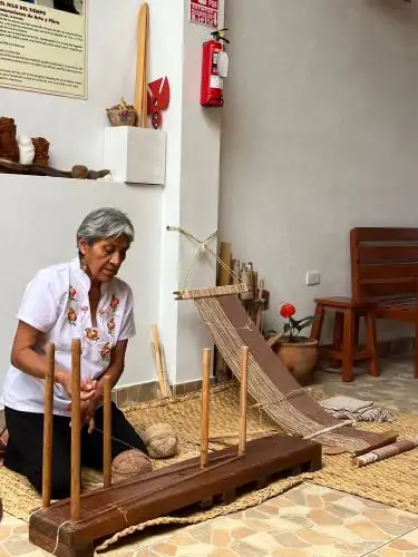 Con gran entusiasmo se inauguró el renovado Taller Artesanal “Valle de las Pirámides”, ubicado en el distrito lambayecano de Túcume- iniciativa liderada por la artesana Flor Asalde Ventura, quien junto a un grupo de mujeres tejedoras mantiene viva la tradición del tejido en telar de cintura con algodón nativo, fibra milenaria originaria de la costa peruana.