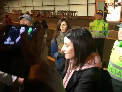 La intérprete Laura Pausini arribó a Lima y ni bien pisó suelo peruano recibió todo el cariño de sus seguidores, quienes pese a las bajas temperaturas no dudaron en apostarse a las afueras del aeropuerto internacional Jorge Chávez portando pancartas y banderolas dándole la bienvenida.