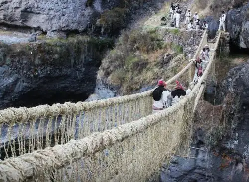 Los incas también eran expertos en construcción de puentes colgantes hechos con fibras vegetales, cuyo conocimiento ha sido heredado por generaciones y que en la actualidad se aprecia en la renovación anual del puente Q'eswachaka, situado en el distrito de Quehue de la provincia cusqueña de Canas.