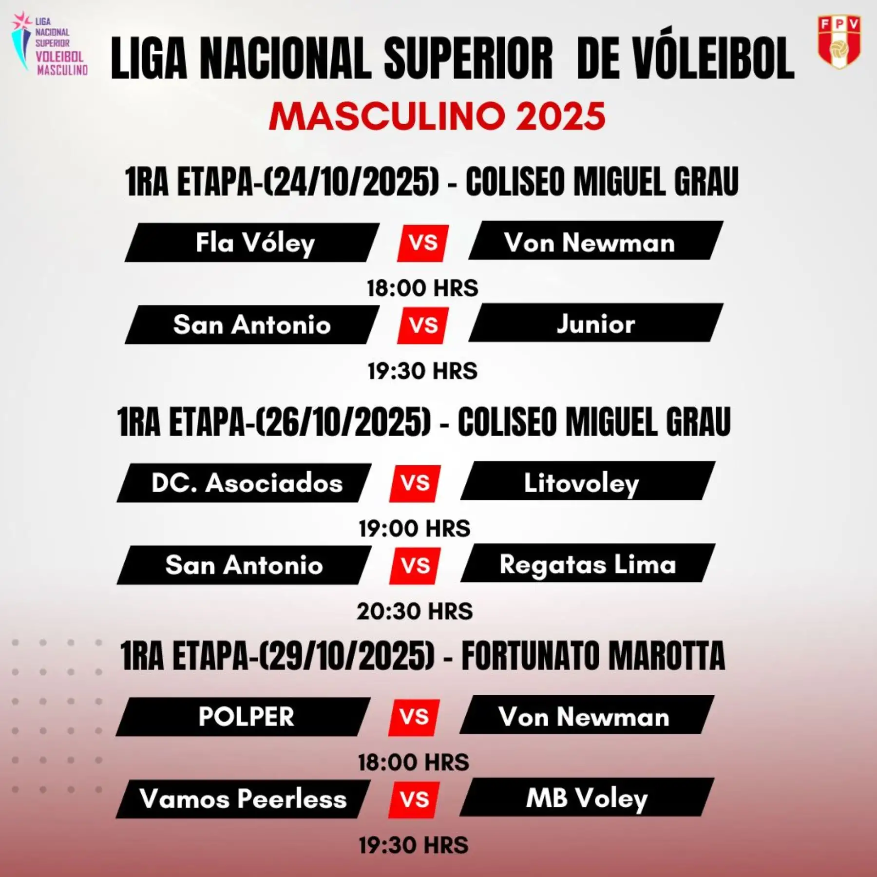 El vóley masculino peruano vuelve a vibrar. Este viernes 24 de octubre se levantará el telón de la Liga Nacional Superior de Vóley Masculino 2025, certamen que reunirá a diez equipos decididos a conquistar el título más importante del país. La cita será en el Coliseo Miguel Grau del Callao, escenario que volverá a convertirse en el epicentro de la acción nacional.