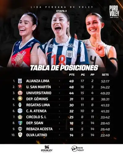 La Liga Peruana de Vóley programó la última fecha de la segunda fase, que se jugará el sábado 7 y domingo 8 de marzo, en el que los diez equipos definirán sus posiciones y los clasificados a los cuartos de final del certamen.