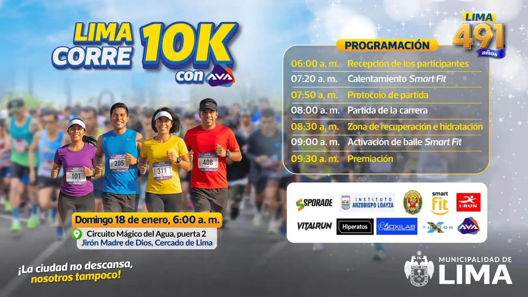 La competencia, que se realizará este domingo 18 de enero, es organizada por la Subgerencia de Educación, Deportes, Juventudes y Recreación de la Municipalidad de Lima y el punto de partida será la puerta 2 del icónico Circuito Mágico del Agua, ubicado en Jr. Madre de Dios.