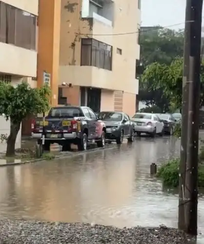 En Chiclayo la lluvia se presentó desde la madrugada y continúa pasada las 10.30 de la mañana de hoy lo que ha convertido las calles y avenidas en pequeños riachuelos que impiden a los transeúntes cruzar de un extremo a otro.