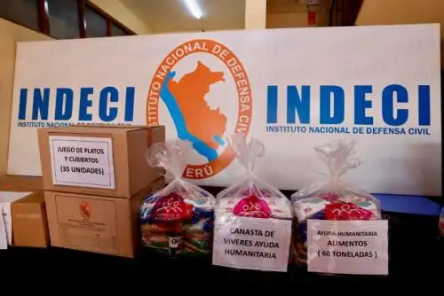 La ayuda humanitaria, trasladada desde los almacenes del Indeci en Arequipa, consiste en diversos alimentos no perecibles, como arroz, fideos, quinua, frijol, aceite, azúcar, lenteja y atún. También se envió diversos bienes de apoyo como carpas, camas, colchones, abrigo, herramientas, enseres y menaje.