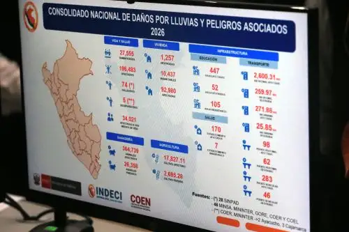 En cuanto a infraestructura dañada, el titular del Indeci indicó que 447 aulas educativas están afectadas, otras 52 quedaron destruidas y 105 resultaron inhabitables. Por su parte, 170 establecimientos de salud se encuentran afectados y siete están inhabitables.