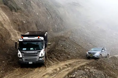 En la Carretera Longitudinal de la Sierra Norte, el tramo Huánuco – Ambo – Conchamarca sufre de restricción del tránsito de vehículos debido a un deslizamiento de lodo y piedras.