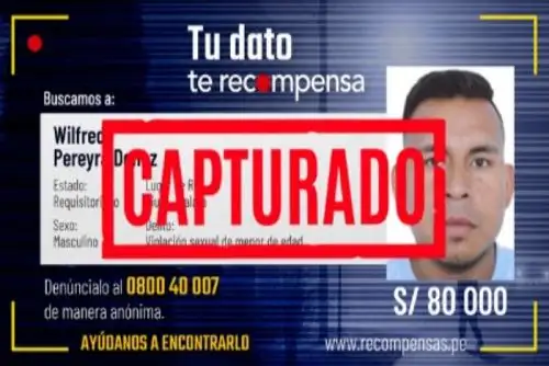 El Mininter, a través del Programa de Recompensas, ofrecía un beneficio económico de 80,000 soles por información relevante que facilite su ubicación y captura.
