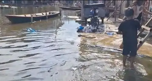 Los vecinos manifestaron que, con el avance de las aguas, los desechos acumulados en calles y alrededores terminan flotando entre las viviendas asentadas en áreas inundables, generando un panorama de contaminación que preocupa a las familias que habitan en esta parte de la ciudad.