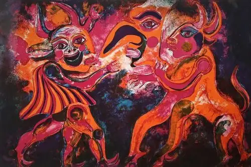 La muestra está compuesta por 41 obras entre esculturas, pinturas, grabados, máscaras y juguetes, brindando una perspectiva amplia de su evolución en el arte. Recorre sus caminos creativos y refleja una mezcla de sus raíces cusqueñas y la influencia de corrientes artísticas internacionales.