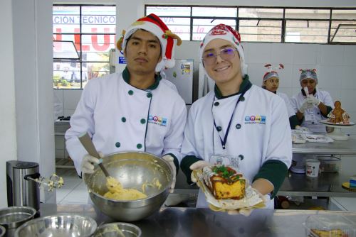 Estudiantes del Centro de Educación Técnico Productivo (CETPRO) San Luis presentaron una variedad de productos de panadería y pastelería navideña como parte de la fase final del programa de Panificación Industrial, una de las carreras técnicas gratuitas que ofrece esta modalidad educativa y que permite a jóvenes y adultos emprender en corto tiempo.