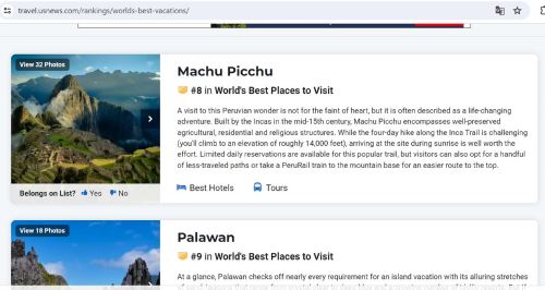 Por último, Promperú manifestó que el listado Best Vacations evalúa anualmente más de 1,500 destinos en todo el mundo. El equipo editorial de viajes de U.S. News lleva a cabo un análisis basado en la suma de la votación de los usuarios, quienes califican individualmente cada categoría.