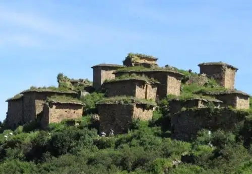 Existe un palacio principal de forma pentagonal denominado Marca Cullpi y elevadas construcciones rectangulares de hasta 10 metros de alto construidas con piedras labradas.