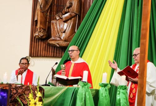 La actividad central se inició temprano con la tradicional misa Te Deum, en la catedral de Puerto Maldonado, la misma que fue oficiada por el obispo, monseñor David Martínez de Aguirre.