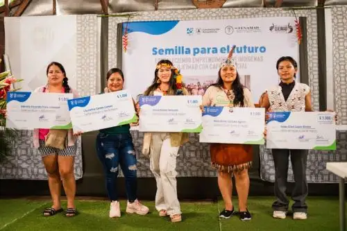 Las jóvenes premiadas fueron Adela Ajahuana, de la comunidad Boca Pariamanu, con un emprendimiento de artesanía con materiales del bosque; Keissy López, de Puerto Nuevo, con un proyecto de moda cultural indígena; Lita Canelos, de Puerto Arturo, con una iniciativa de medicina natural ancestral; Gabriela Pesha, de la comunidad Infierno, con una propuesta de turismo vivencial; y Aydee Montes, de Queros, quien desarrolla artesanía con enfoque de educación ambiental dirigida a niños.