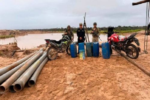 Durante la acción, se desmantelaron cinco pozas de gran tamaño y tres balsas draga. Además, se incautaron motores sumergidos, combustible, bombas de succión, alfombras, cilindros metálicos, tuberías y otros implementos clave para la operación minera.