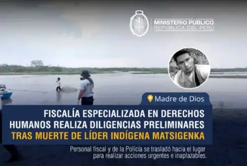La Fiscalía Penal Supraprovincial Especializada en Derechos Humanos e Interculturalidad de Madre de Dios, en coordinación con la Fiscalía Provincial Mixta de Manu, inició diligencias urgentes tras ser informados, el 8 de octubre último, sobre el hallazgo del cadáver del líder indígena matsigenka Gerardo K.E., cerca de la comunidad nativa Shipetiari.