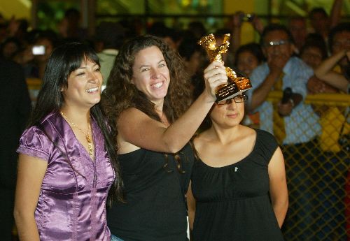 La cineasta Claudia Llosa, ganadora del Oso de Oro en el Festival de Berlin, junto a la protagonista del filme, Magaly Solier. Foto: ARCHIVO ANDINA