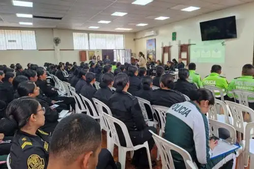 Más de 150 policías de la Dirección de Tránsito, Transporte y Seguridad Vial participaron en la charla ‘Derechos y beneficios del Policía’ que organizó la Dirección de Bienestar y Apoyo al Policía, donde expusieron especialistas del Fondo de Aseguramiento en Salud de la PNP (SaludPol).