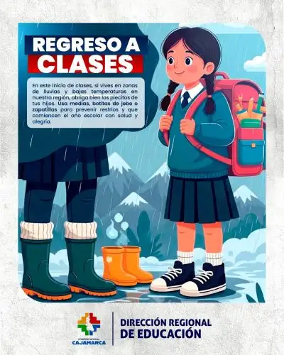 Como parte del cuidado de la salud y bienestar de los escolares, la Dirección Regional de Educación de Cajamarca, recomendó a las familias que, ante la temporada de lluvias y las bajas temperaturas, abriguen adecuadamente los pies de las niñas y los niños al asistir a la escuela.