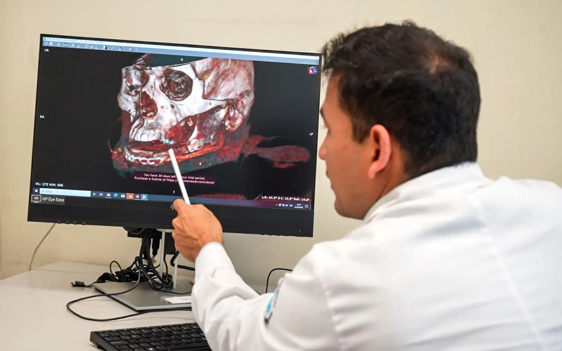 El doctor Renzo Romero Ribeiro, cirujano de cabeza, cuello y maxilofacial del hospital Almenara, informó que al paciente se le extirpó un ameloblastoma, un tumor benigno pero agresivo que había destruido cerca del 60 % de su mandíbula.