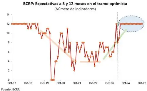 El Ministerio de Economía y Finanzas (MEF) informó que en octubre del 2025 los 12 indicadores de expectativas empresariales a 3 y 12 meses se mantuvieron en el tramo optimista por 17 meses consecutivos, el período más prolongado registrado en los últimos siete años, desde el 2018.