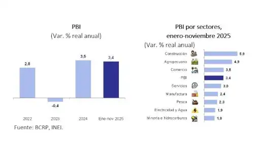 De acuerdo con información del Instituto Nacional de Estadística e Informática (INEI), la economía peruana registró un crecimiento acumulado de 3.4% en ese periodo. Asimismo, en noviembre se alcanzó una tasa de expansión de 1.5%.