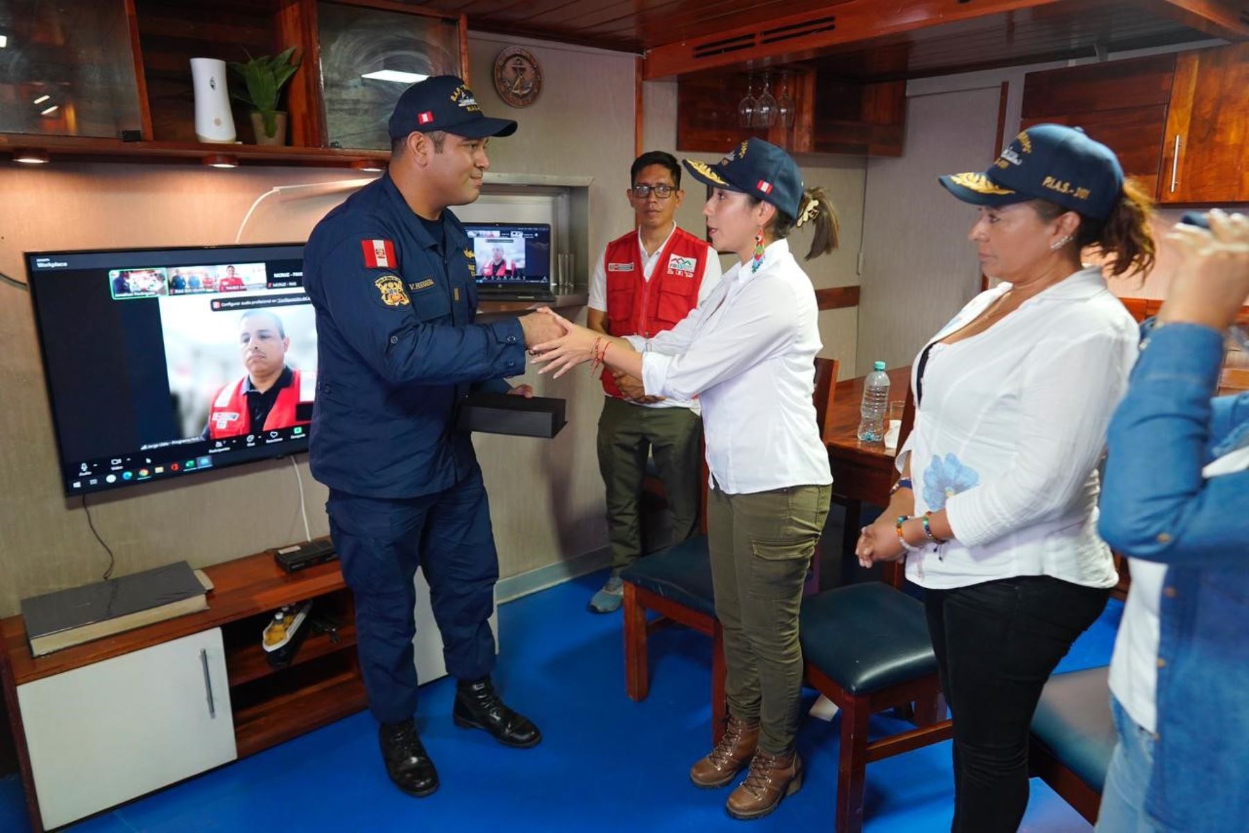 Desde la Base Naval Manuel Clavero, en Iquitos, la titular del Midis lideró el zarpe de las PIAS Napo, Morona, Putumayo I, Putumayo II y el BAP Yahuas.