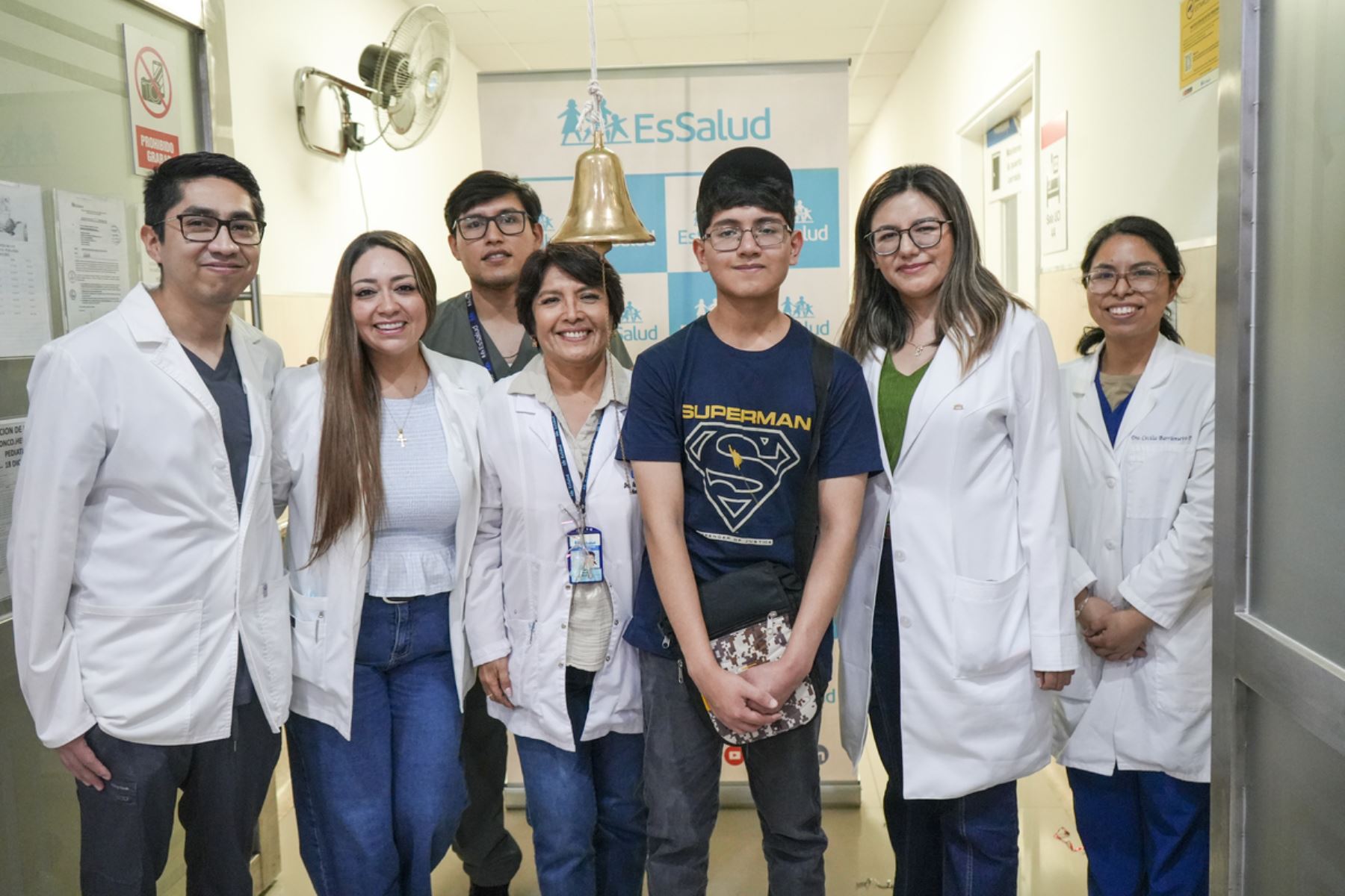 “Estoy muy contento. Ahora sí voy a poder pasar una feliz Navidad con mi familia. Agradezco principalmente a Dios y, por supuesto, a EsSalud, a los médicos, a mi familia, y soy un testigo vivo de que se puede vencer a esta enfermedad”, dice el adolescente y sus palabras se convierten en un mensaje de fe para otros menores que aún esperan dar el campanazo.