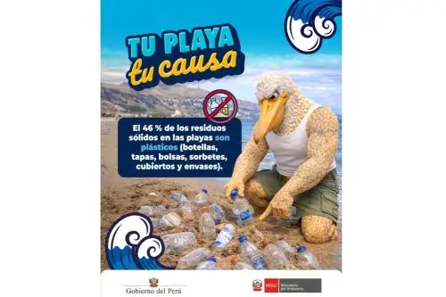 “¡No te pases!”, añade el Minam, en tono coloquial. Y acota que el personaje ‘Pelícano Vigía’ está haciendo su parte en el cuidado de la franja costera. “¡Y tú también puedes! Cada botella que recoges, cada desecho que llevas al tacho es un respiro para tu playa, tu causa”.