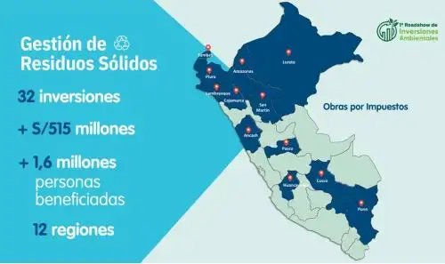 En cuanto al tratamiento de desechos, trabajamos en 12 regiones bajo la modalidad OxI. Se trata de 32 iniciativas que implican más de 515 millones de soles en inversión y beneficiarán a 1.6 millones de personas