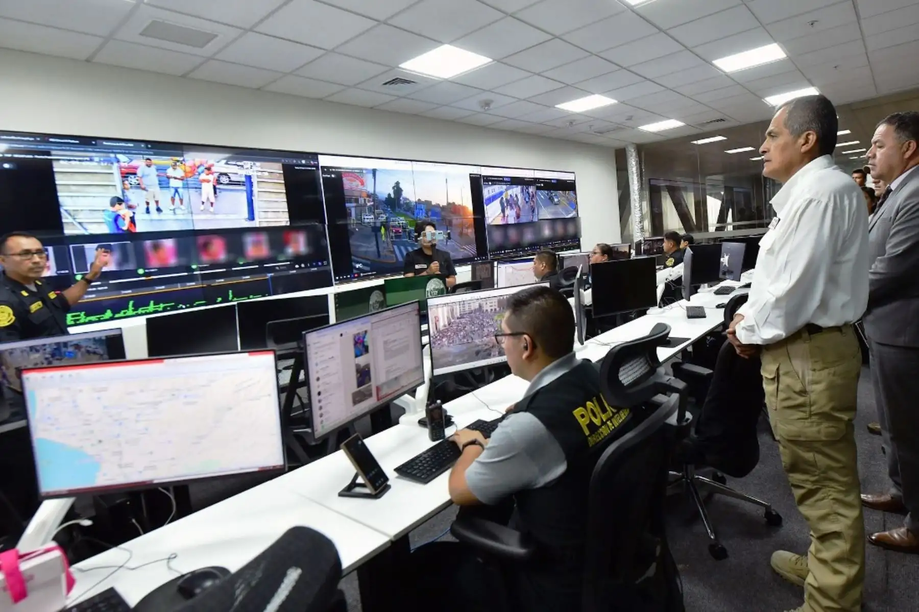 "Estamos hablando que ya se encuentran en funcionamiento 239 cámaras aproximadamente de más de 3 000 que se tienen proyectadas y es más, en los últimos meses ya hemos tenido resultados, personas solicitadas por la justicia han sido detectadas desde este centro e intervenidas inmediatamente por la Policía Nacional del Perú y llevadas a los órganos jurisdiccionales que son solicitados", agregó el ministro del Interior.