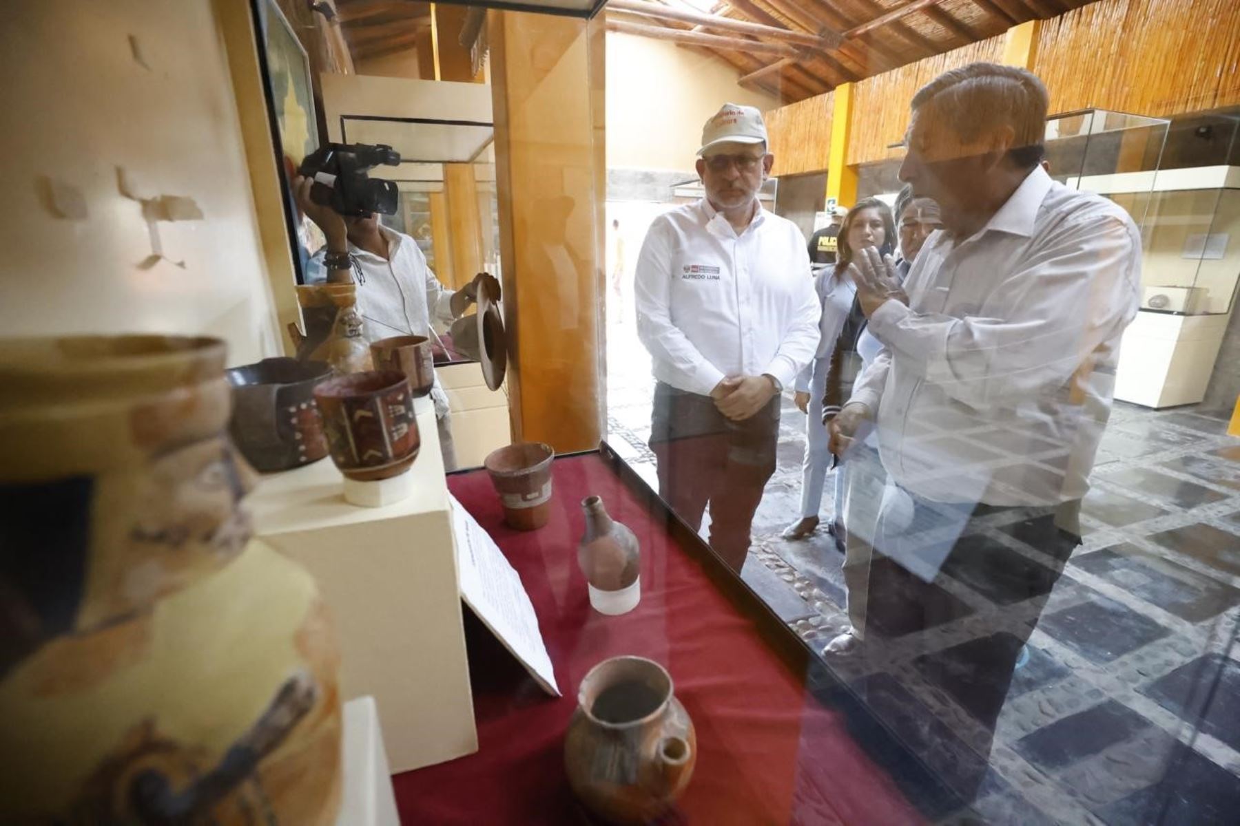 Luego, recorrió el Museo de Sitio, inaugurado en 1996, donde se exhiben bienes culturales procedentes de excavaciones arqueológicas en la zona monumental Wari: cerámicas, líticos, textiles, monolitos y otros materiales, junto con textos explicativos sobre esta cultura.