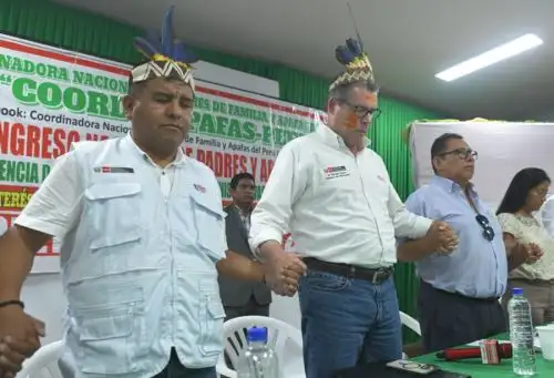 Luego de clausurar el Congreso Nacional de Padres de Familia y Apafas del Perú, el ministro Quero, acompañado por su equipo técnico, sostuvo una reunión de trabajo en el local del GORE con las autoridades regionales para evaluar los preparativos para el Buen Inicio del Año Escolar 2025 en Loreto.