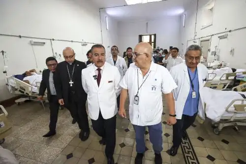 En su visita al Dos de Mayo, el titular de la cartera ingresó al pabellón de adultos, donde se atiende a pacientes con patologías cardiacas, infecciosas, bacterianas y afecciones gastroenterológicas, entre otras. En esta área se brinda atención a poco más de 30 personas. Luego acudió al pabellón pediátrico, donde permanecen hospitalizados más de 30 menores que reciben tratamiento especializado.