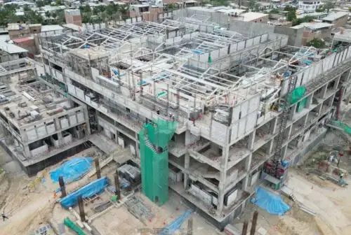 Actualmente, se están haciendo los siguientes trabajos en esta obra: tarrajeo de muros, vigas y columnas; instalaciones sanitarias y eléctricas, asentado de ladrillos, entre otros. Luego, se ejecutará el pulido de pisos, la pintura de cielo raso, la tabiquería de drywall, la colocación de coberturas metálicas y demás.
