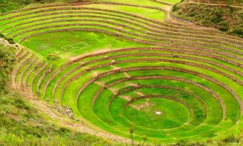 Moray se compone de andenerías concéntricas, puesto que presenta tres hoyos gigantescos con andenerías circulares construidas en sus paredes interiores.
