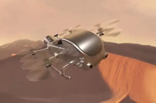 NASA que volará sobre otro cuerpo planetario. El helicóptero tiene ocho rotores y vuela como un gran dron.