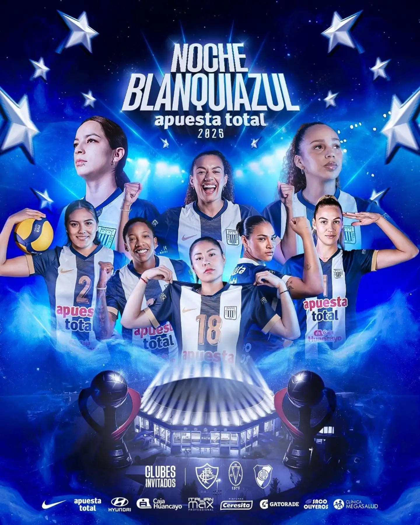 “Noche Blanquiazul”, evento organizado por Alianza Lima, donde se medirán ante Fluminense (Brasil) y River Plate (Argentina). Este torneo reunirá a tres equipos competitivos sudamericanas del voleibol femenino en una antesala ideal para medir el nivel previo al inicio de la liga.