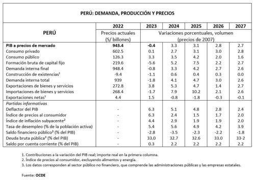 El bloque económico también proyectó un crecimiento de la producción peruana de 2.8% para el 2026, superior al 2.6% inicialmente estimado, y de 2.7% para el 2027.